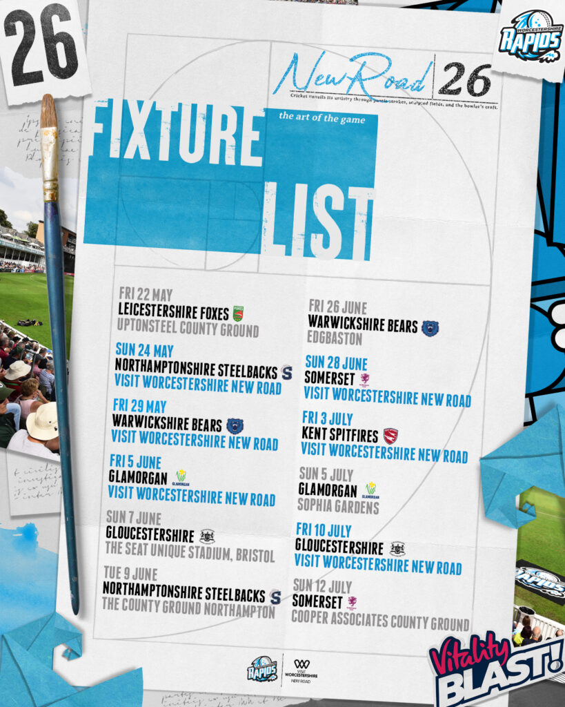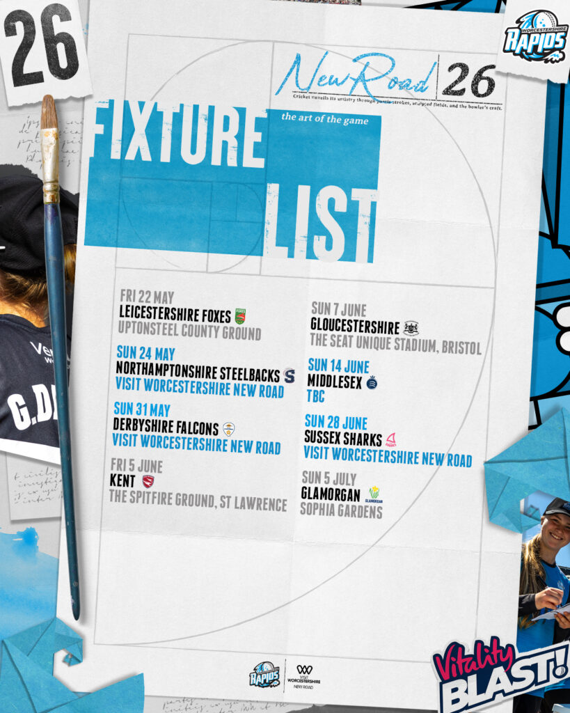 We are delighted to confirm a packed 2026 Vitality T20 Blast fixture schedule that sees Worcestershire Rapids hosting four home Friday night fixtures, as well as two Men’s and Women’s double-headers.